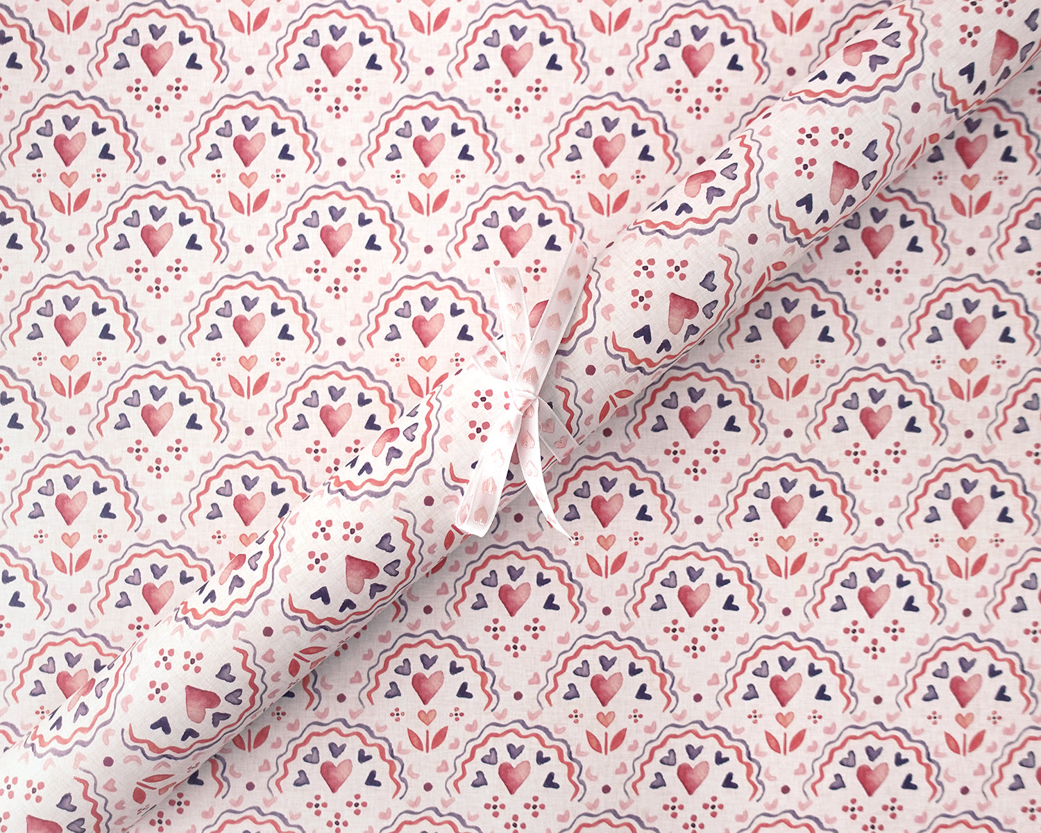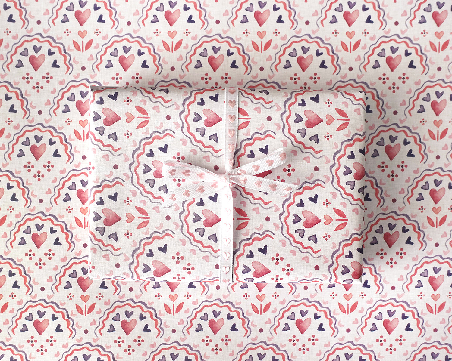 Little hearts and scalloped motifs have been hand-painted by Joanna and turned into darling printed gift wrap sheets. They are made-to-order and will ship directly from my professional printing partner.